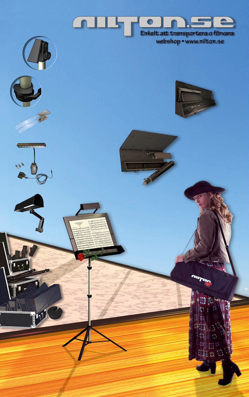 NILTON säljer o tillverkar notställ, notbelysning och väskor för notställ o stativ. Vi har sen 1985 distruberat över 100.000 st notställ av NILTONs modeller. Vi säljer stativ o scentillbehör.